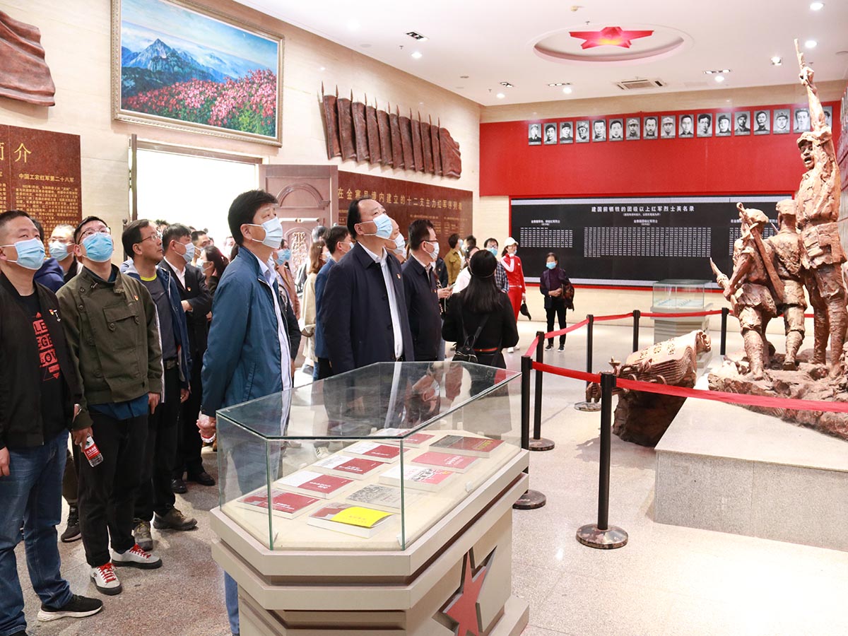 大家依次瞻仰了紅軍紀(jì)念堂、洪學(xué)智將軍紀(jì)念碑、革命烈士墓園,并參觀了革命博物館。同志們認(rèn)真觀看每一張歷史圖片,每一段文字資料,每一件珍貴物品,仿佛置身于那個(gè)烽火燎原的革命年代,看到了當(dāng)年紅軍指戰(zhàn)員浴血奮戰(zhàn)、追求真理的畫面,親身體驗(yàn)到革命先烈們?yōu)閷で笳胬矶幌侇^顱、灑熱血的英雄壯舉,心潮澎湃,深受鼓舞。