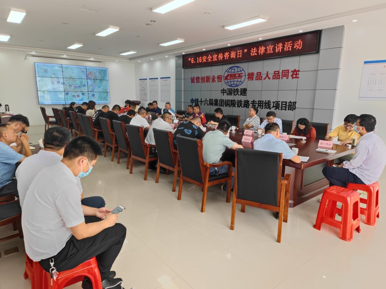 6月14日下午,集團(tuán)公司安全生產(chǎn)領(lǐng)導(dǎo)小組聯(lián)合銅陵江北港鐵路專用線有限責(zé)任公司,組織開(kāi)展“6.16安全生產(chǎn)咨詢?nèi)铡狈尚v活動(dòng),宣傳貫徹新安全生產(chǎn)法和防范非法集資安全知識(shí),推動(dòng)“第一責(zé)任人”守法履責(zé)。集團(tuán)公司總工程師、銅陵江北港鐵路專用線有限責(zé)任公司董事長(zhǎng)、總經(jīng)理張葉來(lái),各子公司、各項(xiàng)目主要負(fù)責(zé)同志參加本次活動(dòng)。