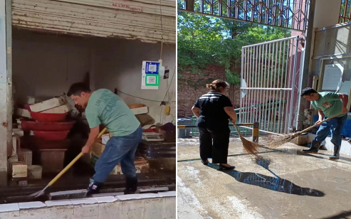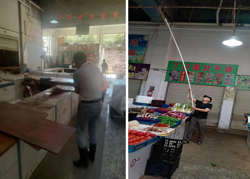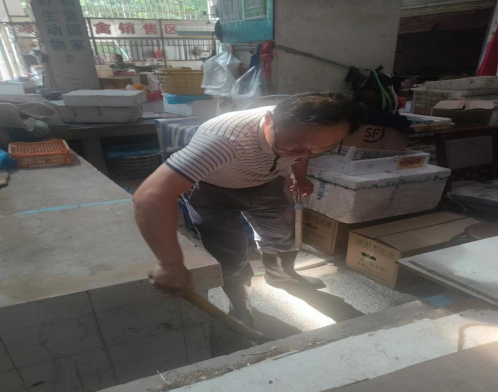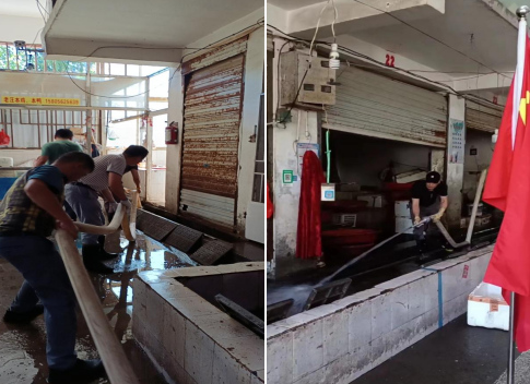 ↑↑↑清理市場水產(chǎn)區(qū)和光禽區(qū)的內(nèi)部地面和排水溝