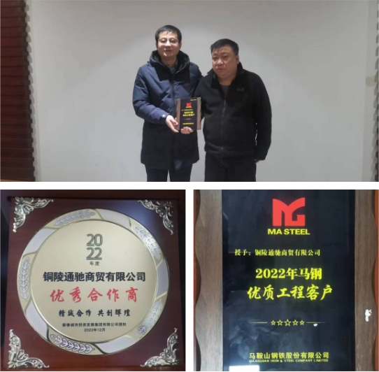 2023年2月10日,通馳商貿(mào)公司憑借精質(zhì)的服務在眾多供應商中脫穎而出,榮獲馬鋼公司2022年度“優(yōu)質(zhì)工程客戶”稱號。馬鋼公司營銷中心市場分析師、首席營銷師夏仕卿特赴公司現(xiàn)場授牌并調(diào)研相關(guān)工作。