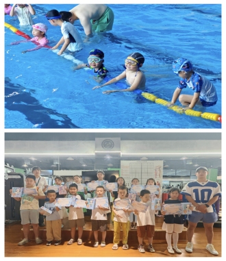 在結業(yè)儀式上,小業(yè)主們身著泳裝,精神抖擻地展示著自己的學習成果。隨后,孩子們滿心歡喜地領取了屬于自己的結業(yè)證書,這不僅是對他們這段時間努力的認可,更是一份珍貴的成長紀念。