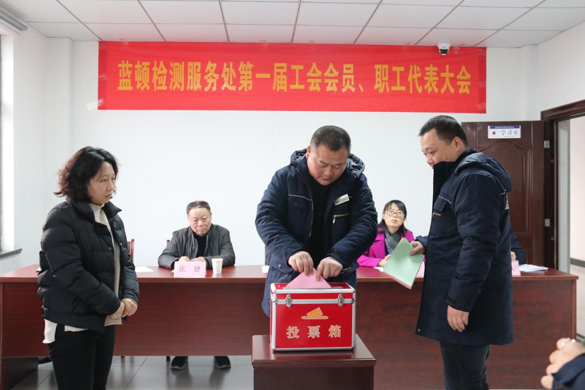 1月18日下午,藍頓車輛檢測服務處舉行第一屆工會會員、職工代表大會,選舉產生新一屆工會委員會委員、經審委員會委員、女工委員會委員。集團公司黨工委委員、紀工委書記章新華,黨工委委員、副總經理范美霞,引江濟淮銅陵公司總經理張健出席并指導活動。