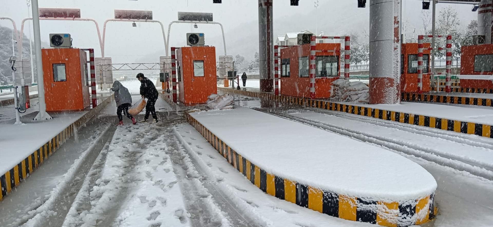 在G347湯溝收費(fèi)站、S320沿江一級(jí)公路收費(fèi)站建設(shè)現(xiàn)場(chǎng),現(xiàn)場(chǎng)人員堅(jiān)持“生命至上、安全第一”的原則,合力清除道路積雪,鋪灑融雪劑,引導(dǎo)過往車輛正常通行,努力為人民群眾創(chuàng)造安全暢通的公路交通環(huán)境。
