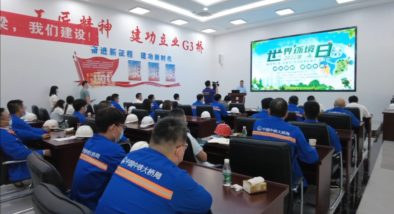 為切實(shí)加強(qiáng)生態(tài)環(huán)保建設(shè),提高施工人員環(huán)保意識,6月2日上午,銅陵長江公鐵大橋投資有限公司總經(jīng)理湯世才在G3產(chǎn)業(yè)工人大講堂宣布舉辦世界環(huán)境日宣傳活動(dòng),全過程建設(shè)管理服務(wù)項(xiàng)目辦公室、公鐵合建段監(jiān)理項(xiàng)目部、公路引橋及接線段監(jiān)理項(xiàng)目部、環(huán)境保護(hù)及水土保持技術(shù)咨詢項(xiàng)目部、中鐵大橋局G3橋項(xiàng)目經(jīng)理部及公司職員百余人參加了活動(dòng)。
