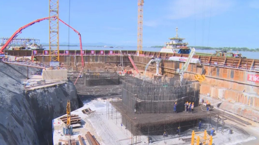 接受著高溫“烤”驗(yàn)的還有工程建設(shè)者。在世界上首座雙層斜拉懸索協(xié)作體系大橋——G3銅陵長(zhǎng)江公鐵大橋的項(xiàng)目工地上,建筑工人正貓著腰穿梭在相當(dāng)于8個(gè)籃球場(chǎng)大的鋼圍堰承臺(tái)間,綁扎鋼筋、澆筑混凝土。