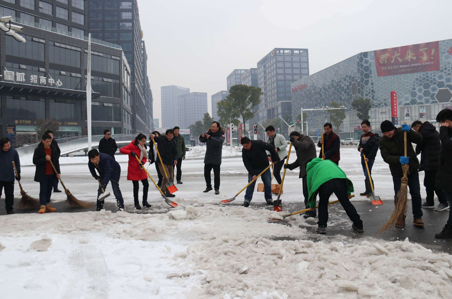 2018年1月28日, 連續(xù)3天的暴雪之后,銅陵城市道路上已覆蓋了厚厚的積雪,多數(shù)路段的積雪已經(jīng)凝結(jié)成冰。為了保障市民的出行安全,貢獻(xiàn)交投公司的一份力量。當(dāng)日下午,市交投公司黨工委領(lǐng)導(dǎo)帶領(lǐng)全體員工進(jìn)行了義務(wù)除雪活動。