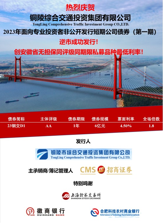 此次發(fā)行成功,創(chuàng)下安徽省同評級同期限私募品種歷史最低利率,倍數(shù)為1.8,是交投集團在資本市場的又一次華麗亮相。不僅豐富了交投集團直融產品體系,優(yōu)化了交投集團負債利率水平,同時為后續(xù)交投集團在資本市場的持續(xù)運作打下堅實基礎。