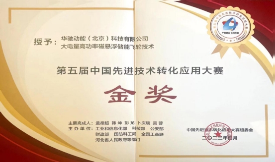 2023年4月6日,我司銅交投海貝科創(chuàng)股權基金所投華馳動能項目,在河北省保定市舉辦的第五屆中國先進技術轉(zhuǎn)化應用大賽(以下簡稱本屆大賽)中,以“大電量高功率磁懸浮儲能飛輪技術”,成功斬獲新能源與節(jié)能降碳技術產(chǎn)業(yè)化類金獎。該項目經(jīng)歷三個月激烈角逐,從 1100個參賽項目中脫穎而出,最終在本屆大賽十五個金獎中斬獲一金。