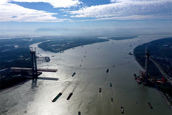 G3銅陵長江公鐵大橋全長11.88公里,主跨988米,是世界上首座雙層斜拉-懸索協(xié)作體系公鐵大橋,具有 “高速公路、城際鐵路和貨運(yùn)鐵路”三種過江功能。大橋建成后將進(jìn)一步完善國家和安徽省的高速公路網(wǎng),對提升區(qū)域過江通道通行能力,發(fā)揮安徽承東啟西、連接長三角和川渝鄂贛的中樞作用具有重要意義。