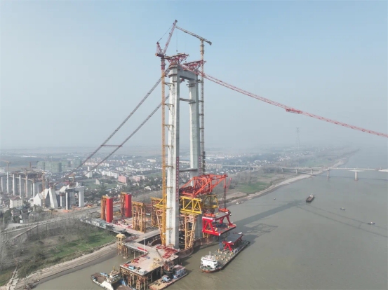 11月23日,G3銅陵長(zhǎng)江公鐵大橋北主塔成功架設(shè)第一節(jié)鋼梁,拉開(kāi)了大橋江北側(cè)鋼梁架設(shè)的序幕。