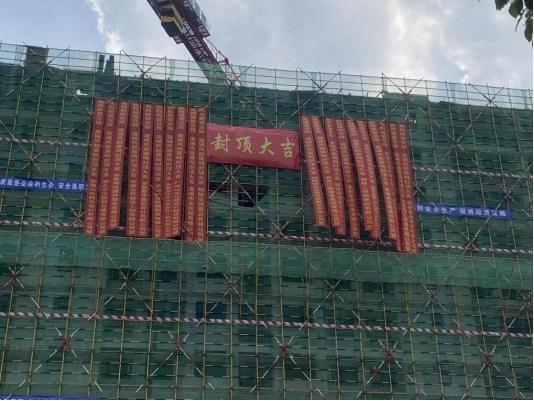 工程質(zhì)量是房企生存之本,鳳起宸鳴項目久久為功,從一紙藍(lán)圖到喜封金頂,是各參建單位通力配合的結(jié)果,也是項目上下全體人員努力奮斗的結(jié)果。在全員見證下,出席的嘉賓們一同為項目封頂澆筑最后一方混凝土,至此,本次封頂儀式圓滿禮成。