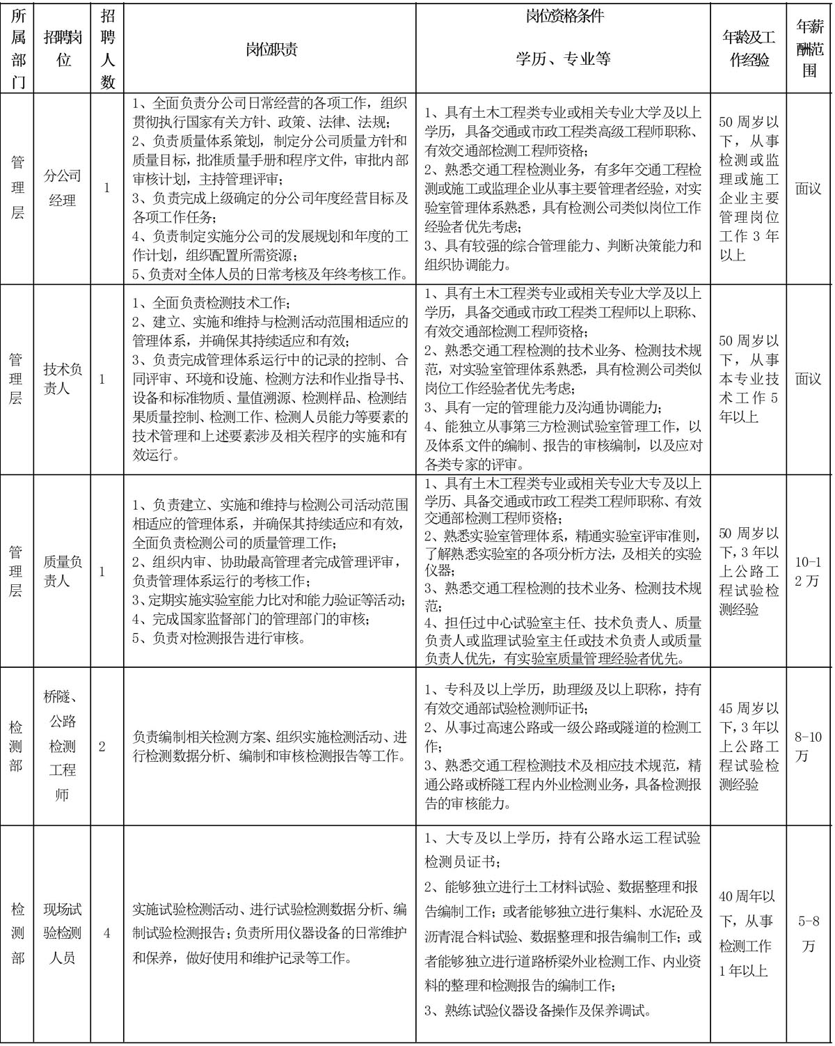 3.熱愛(ài)交通檢測(cè)行業(yè),勤勉盡責(zé),誠(chéng)實(shí)守信,無(wú)不良記錄;