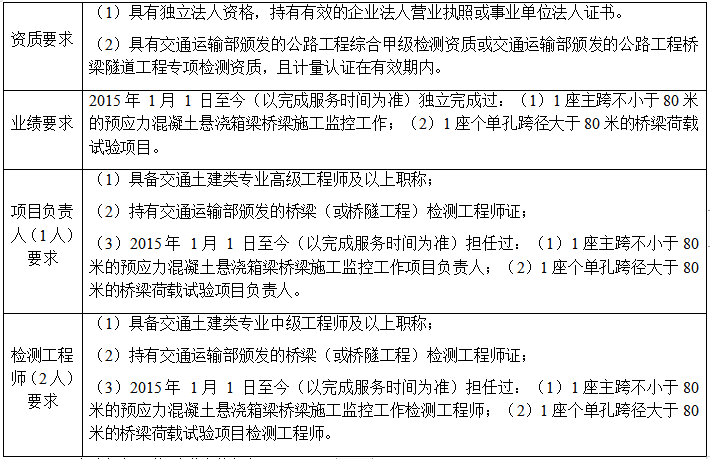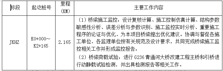 2.9 服務(wù)期:自合同簽訂之日起至橋梁施工監(jiān)控及橋梁荷載檢測驗(yàn)收合格后結(jié)束。