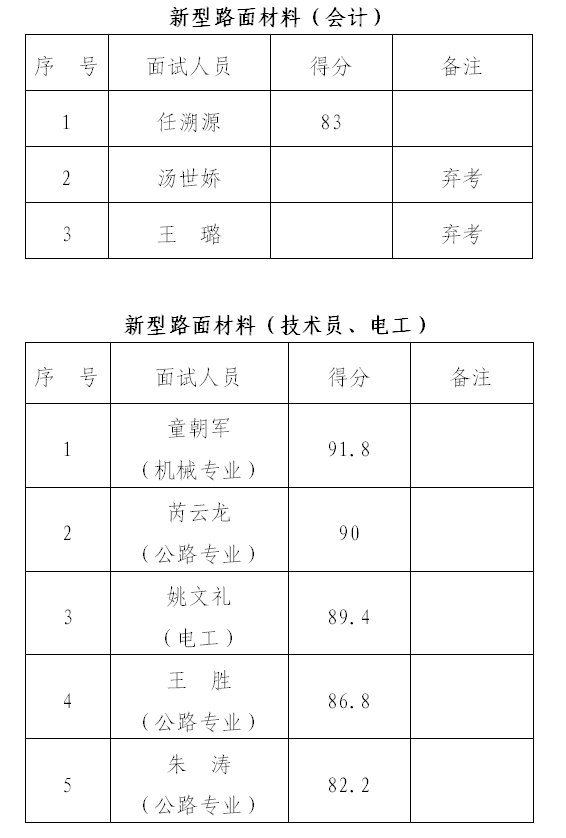根據(jù)《銅陵市綜合交通投資集團有限公司公開招聘人員面試公告》,我公司已于1月13日開展銅陵市綜交新型路面材料有限責(zé)任公司、銅陵交投再生資源綜合利用有限公司招聘人員面試工作,現(xiàn)將擬招錄人員名單公示如下。
