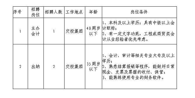 銅陵市綜合交通投資集團有限公司招聘崗位表