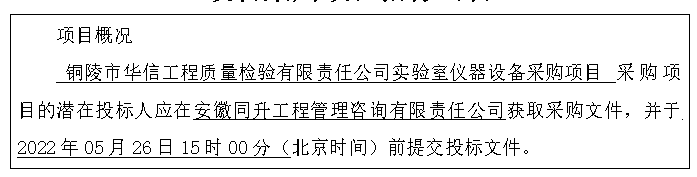項(xiàng)目名稱:銅陵市華信工程質(zhì)量檢驗(yàn)有限責(zé)任公司實(shí)驗(yàn)室儀器設(shè)備采購(gòu)項(xiàng)目