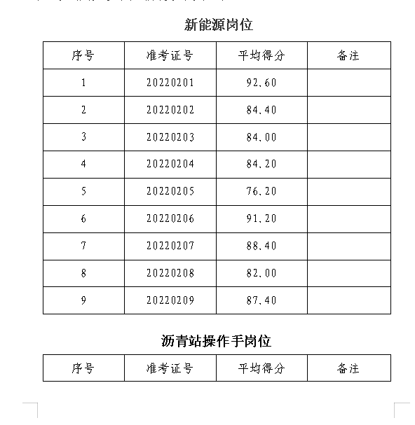 根據(jù)2022年7月25日發(fā)布的《銅陵市綜合交通投資集團有限公司公開招聘人員公告》規(guī)定,我公司已于2022年9月7日開展新能源及瀝青站操作手崗位的面試工作,現(xiàn)將參加考試的人員面試成績公示如下:
