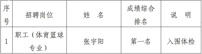 根據(jù)《銅陵市綜合交通投資集團(tuán)有限公司公開(kāi)招聘人員公告》和面試綜合成績(jī)排名,結(jié)合公司崗位實(shí)際需求和面試評(píng)審專(zhuān)家綜合意見(jiàn),我公司經(jīng)研究決定,本次招錄一名職工(體育籃球?qū)I(yè))。現(xiàn)將入圍體檢人員名單公示如下: