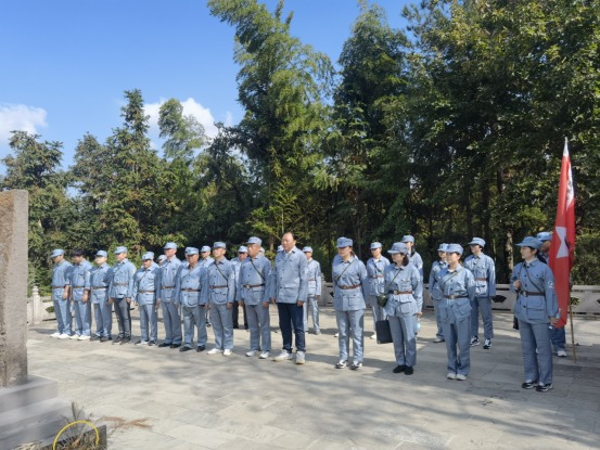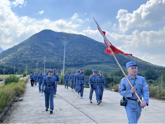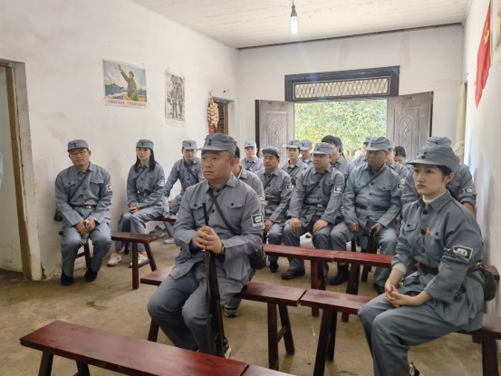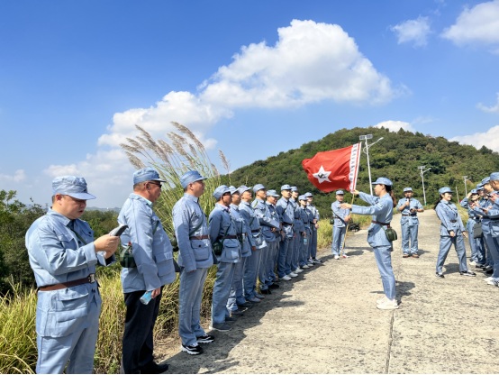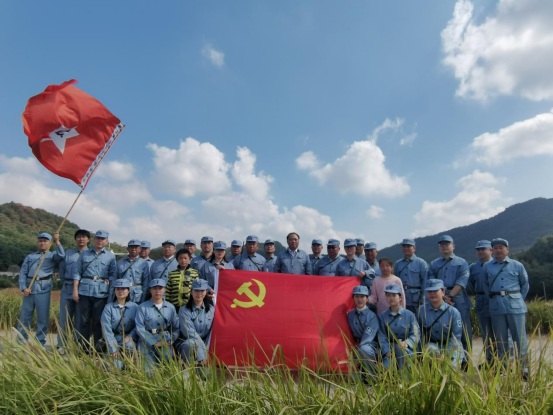 活動中,大家首先觀看了《渡江偵察記》節(jié)選片段,重溫了那段革命戰(zhàn)爭場景,回顧了劉四姐為革命事業(yè)甘于奉獻(xiàn)的愛國精神。隨后,大家換上新四軍軍服,就地開啟新四軍紅色文化體驗(yàn)之旅,重溫紅色記憶。爾后大家齊唱一首革命歌曲《沒有共產(chǎn)黨就沒有新中國》;重走一段新四軍的小路,山路高低不平,少數(shù)黨員同志能夠克服困難,堅(jiān)持走了5公里;聽一段新四軍故事,講解員講述劉四姐傳奇而短暫的感人故事;吃一頓新四軍飯,憶苦思甜,吃著紅薯,感受當(dāng)年新四軍為新中國解放事業(yè)作出的巨大貢獻(xiàn)。