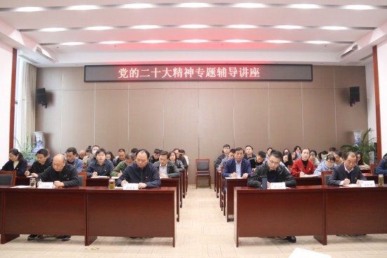 會上,汪洋教授圍繞深入學(xué)習(xí)領(lǐng)會黨的二十大精神,重點從“黨的二十大的主題、過去五年的工作和新時代十年的偉大變革、開辟馬克思主義中國化時代化新境界、新時代新征程中國共產(chǎn)黨的歷史使命、奪取全面建設(shè)社會主義現(xiàn)代化國家新勝利的戰(zhàn)略任務(wù)、堅定不移全面從嚴(yán)治黨”六個方面作了系統(tǒng)闡釋和解讀。輔導(dǎo)報告主題鮮明、內(nèi)容豐富,具有很高的政策理論性和實踐指導(dǎo)性。
