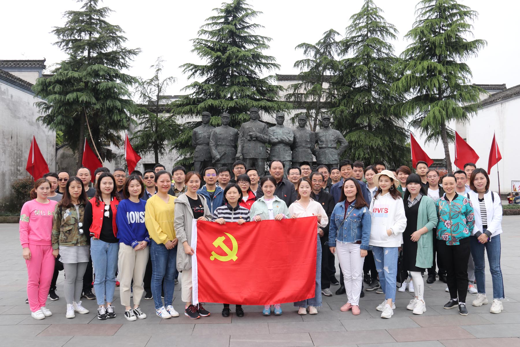 在巖寺新四軍軍部舊址紀(jì)念館廣場,公司全體黨員職工集體瞻仰了新四軍六將領(lǐng)雕像,表達(dá)對(duì)革命先輩的深切緬懷和無限敬仰。