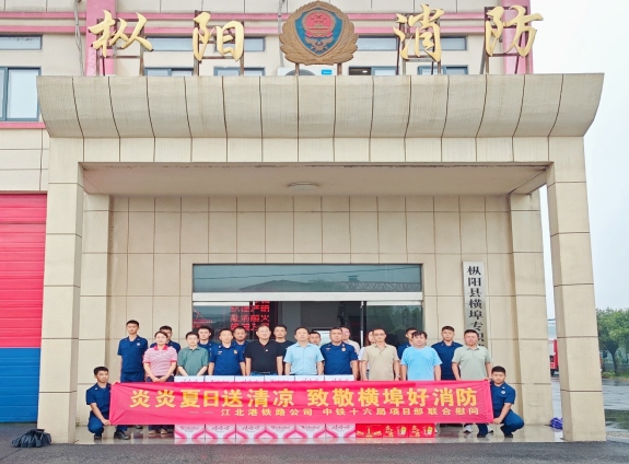 為深入貫徹落實(shí)習(xí)近平總書(shū)記關(guān)于雙擁工作的重要指示精神,深化“擁軍優(yōu)屬 擁政愛(ài)民”工作實(shí)效,大力營(yíng)造擁軍、愛(ài)軍、崇軍濃厚氛圍。值此“八一”建軍節(jié)來(lái)臨之際,江北港鐵路專用線公司黨支部聯(lián)合中鐵十六局江北港鐵路專用線項(xiàng)目部走進(jìn)樅陽(yáng)縣消防救援大隊(duì)橫埠政府專職消防隊(duì),開(kāi)展“八一”擁軍慰問(wèn)活動(dòng),為消防指戰(zhàn)員們送去關(guān)懷。