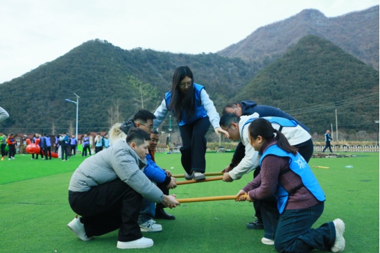 活動(dòng)前期,集團(tuán)公司精心謀劃、周密部署,結(jié)合交通基建行業(yè)特點(diǎn)與員工需求,制定了“協(xié)作-放松-凝聚”閉環(huán)式活動(dòng)方案,配套完善的安全保障與后勤服務(wù),確?;顒?dòng)有序高效開展。12月31日下午,大家乘坐大巴車抵達(dá)池州后,迅速開啟破冰建隊(duì)環(huán)節(jié)。各小組推選隊(duì)長(zhǎng)、設(shè)計(jì)隊(duì)名與口號(hào),通過風(fēng)采展演快速拉近彼此距離,打破部門隔閡。隨后,“源源不斷”“暢行無阻”“車輪滾滾”等協(xié)作項(xiàng)目輪番上演,隊(duì)員們手拉手穿越呼啦圈、同步驅(qū)動(dòng)充氣毛毛蟲、齊心協(xié)力滾動(dòng)團(tuán)隊(duì)車輪,在默契配合中強(qiáng)化“分工協(xié)作、精準(zhǔn)規(guī)劃”的協(xié)同意識(shí),賽場(chǎng)內(nèi)外歡呼聲、喝彩聲此起彼伏,充分展現(xiàn)了“交投人”昂揚(yáng)向上、奮勇爭(zhēng)先的精神風(fēng)貌。