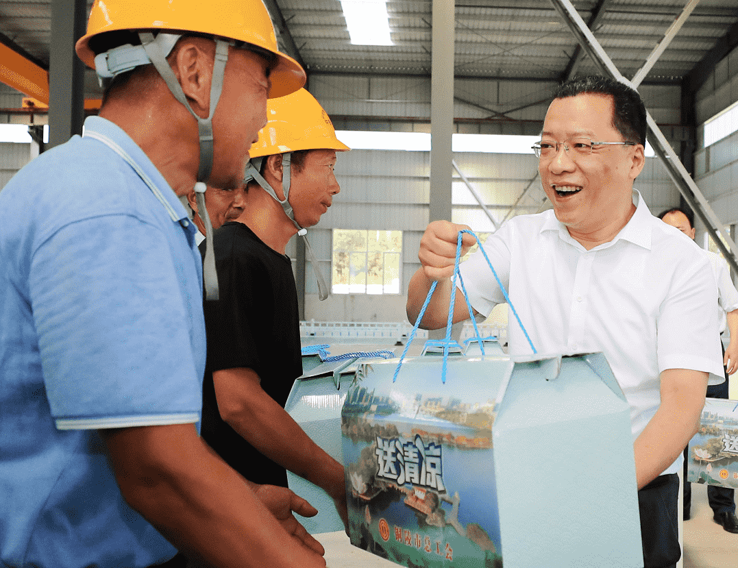 連日來,銅陵持續(xù)晴熱高溫,給一線職工帶來很大考驗(yàn)。7月15日上午,市委書記丁純深入我公司部分項(xiàng)目現(xiàn)場,實(shí)地調(diào)研項(xiàng)目建設(shè)情況,看望慰問堅(jiān)守崗位的一線職工,代表市委、市政府向全市奮戰(zhàn)在高溫一線的廣大職工表示慰問和感謝。市委常委、秘書長、宣傳部部長潘榮華,集團(tuán)公司黨委書記、董事長何成龍參加。