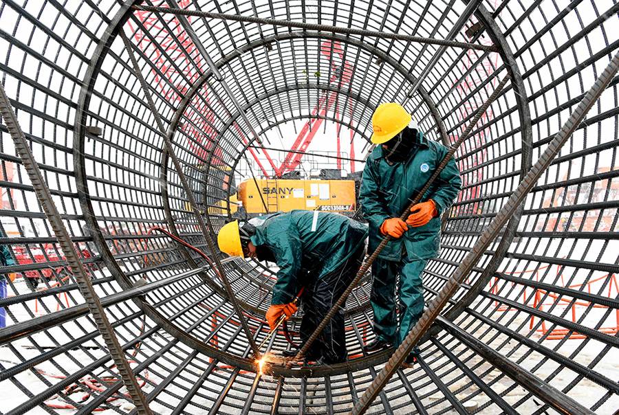 人民網(wǎng)合肥2月9日電(陳浩)虎年上班首日,安徽銅陵出現(xiàn)降雪天氣,但建設者的熱情沒有絲毫減弱。為確保G3銅陵長江公鐵大橋建設進度,施工人員頂風冒雪為大橋3號主墩安裝鉆孔樁鋼筋籠。