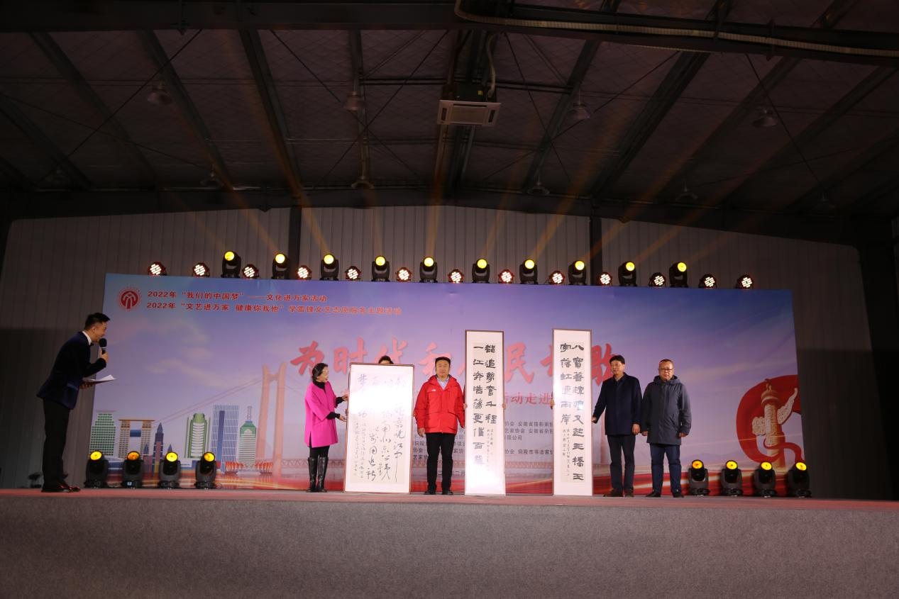 2月28日晚6點,安徽省文聯(lián)文藝志愿者協(xié)會“為時代和人民放歌”文化進萬家活動在G3銅陵長江公鐵大橋工地隆重舉行。中國戲劇家協(xié)會副主席韓再芬等80多名藝術(shù)家、文藝工作者走進工地,為200多名大橋建設(shè)者帶來了一場豐富多元的文藝盛宴。