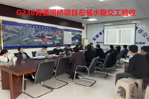 5月12日上午,G236青通河大橋改建工程左幅水泥穩(wěn)定碎石基層順利通過(guò)交工驗(yàn)收。