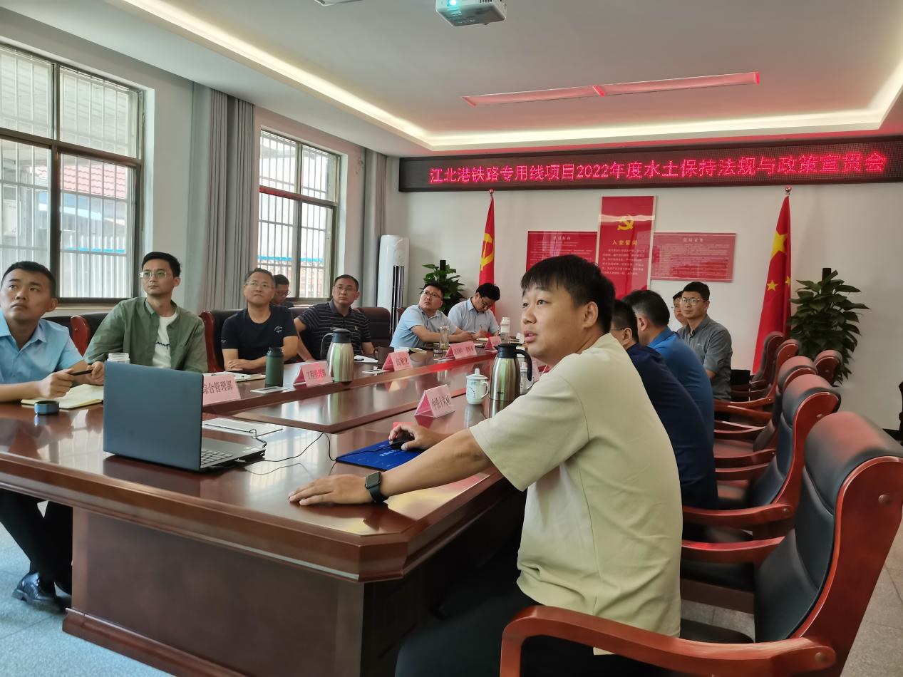 為提高全體參建單位水保法律法規(guī)意識(shí),扎實(shí)有序推進(jìn)項(xiàng)目建設(shè)期水土保持管理工作,6月9日上午,江北港鐵路專用線公司組織召開項(xiàng)目2022年度水土保持法規(guī)與政策宣貫會(huì)。公司副總經(jīng)理高家立主持會(huì)議。集團(tuán)公司總工程師,江北港鐵路公司董事長(zhǎng)、總經(jīng)理張葉來(lái),公司部門相關(guān)人員、十六局項(xiàng)目經(jīng)理部、上海先行項(xiàng)目監(jiān)理部相關(guān)人員出席會(huì)議,二十局項(xiàng)目經(jīng)理部以視頻方式參會(huì)。
