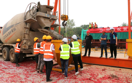 為確保本次首梁澆筑順利開展,中鐵十六局項目團隊精心組織,統(tǒng)籌安排,從施工組織、材料設(shè)備、人員配置、鋼筋加工與模板安裝、混凝土原材料等各環(huán)節(jié)嚴格按照標準化施工要求進行。 同時,積極開展對施工隊伍的技術(shù)、安全交底,嚴格現(xiàn)場技術(shù)監(jiān)控和安全質(zhì)量管理,保障了首梁澆筑過程的連續(xù)、規(guī)范。
