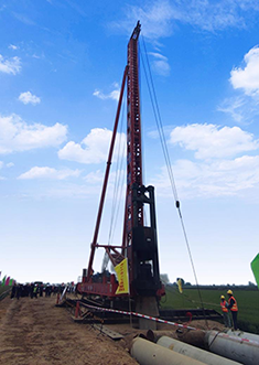 4月20日上午,江北港鐵路專用線跨國道G347特大橋施工現(xiàn)場,全線第一根預應(yīng)力高強混凝土管樁(簡稱PHC管樁)試樁成功。
